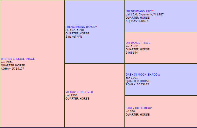 WPH Mi Special Image 2016 sorrel has several full brothers and sister make there way in the performance world both in barrels and roping. He most notable 3/4 sister is ridden by Cami Bussmus Cappi she has won multiple derby champion ship and 1D placing. She is bred to Guys Dash A Latte for 2025 and will be bred back the same way for 2026.