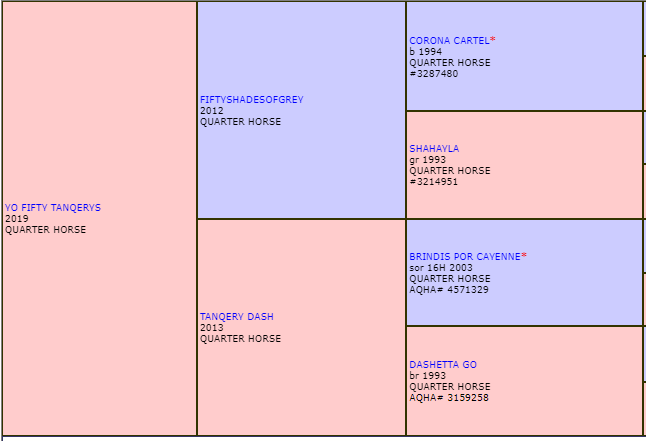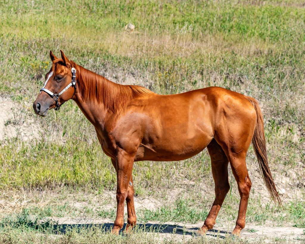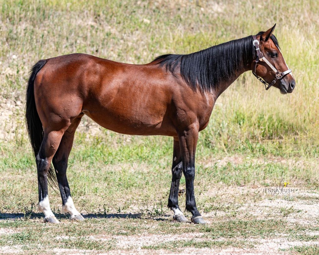 Yo Fifty Tanqerys 2019 bay filly LTE $8,639. This filly ran a SI of 114 in Gillette Wyoming before chipping her knee and becoming broodmare sound. We are very excited to add her to our program. She has a pedigree packed full of winners. Tang is bred to Guys Dash A Latte for 2025 and will be bred back the same way in 2026.
