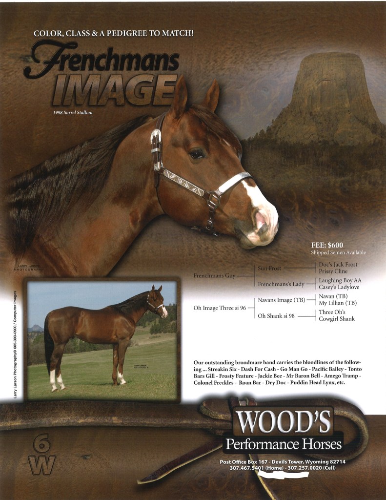RIP Frenchmans Image We lost Image March 2023 he will be greatly missed but will live on threw his son’s and daughters. Image was a 1998 model and one of the biggest reasons we have come so far with our program. Image got injured at his first barrel futurity and do to lack of funds on my part never made it back to the barrel pen, however he did work all aspects of the ranch and loves to work cattle. With a very limited amount of foals each year he has shown him self as a producer with several barrel money earners and a few AQHA point earners to his credit. I have always maintained that Frenchmans Image’s strongest point is that he produces colts that the whole family can ride and get along with. Not only has he produced, his daughters are going on and showing that they are strong producers also carrying on in their fathers footsteps. https://www.facebook.com/Frenchmans-Image-1637822339854221/